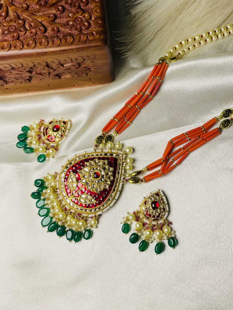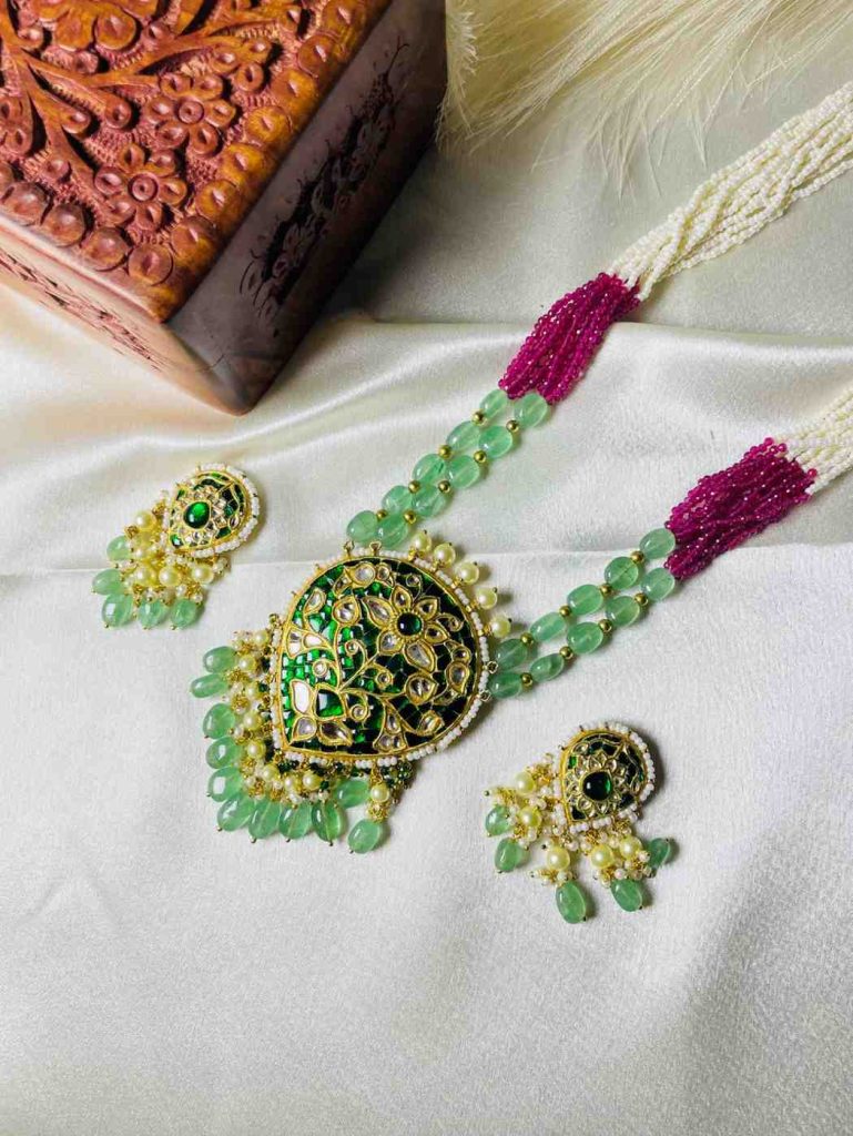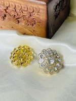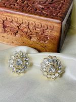 This piece is made in 14K gold with natural diamond polki and diamonds. The gold weighs 13gm. It has 11ct diamond polki and 7ct diamonds.