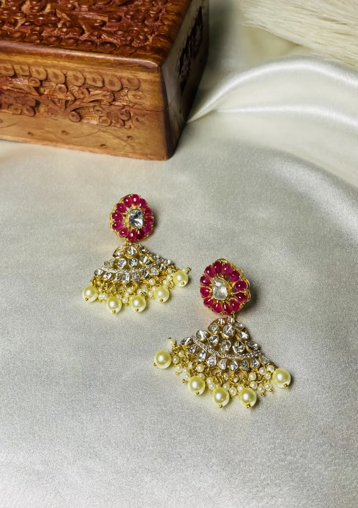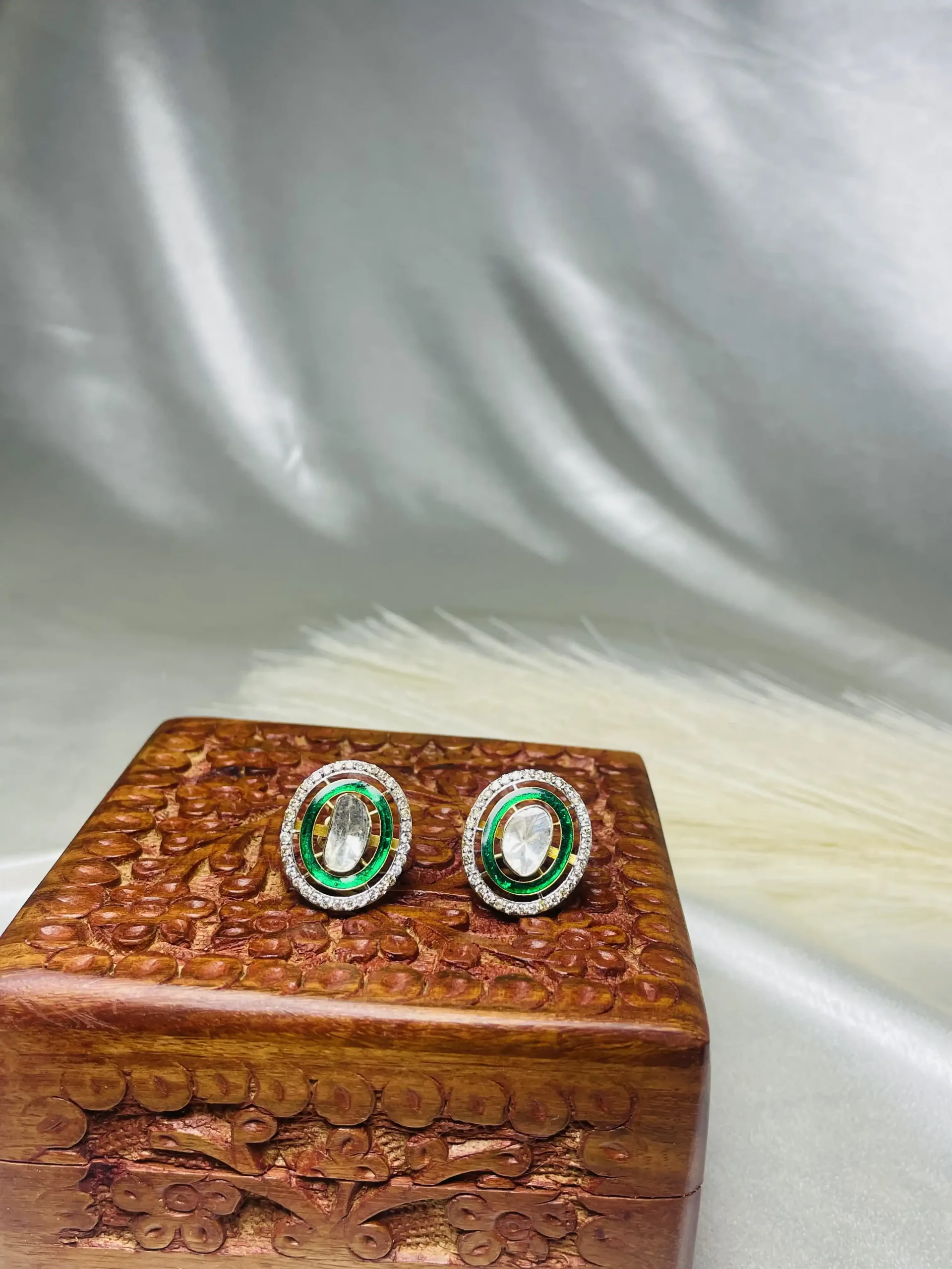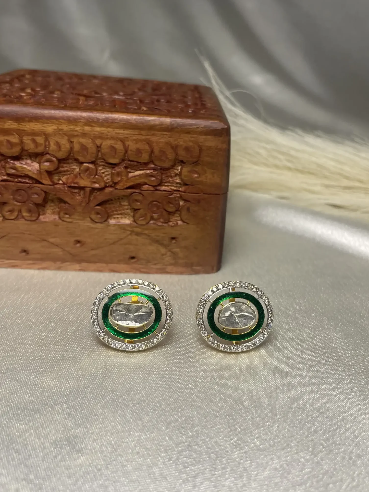 This piece is crafted in 14k, which weighs 6gm of gold, featuring 1.30ct of polki and 1.30ct of diamond polki